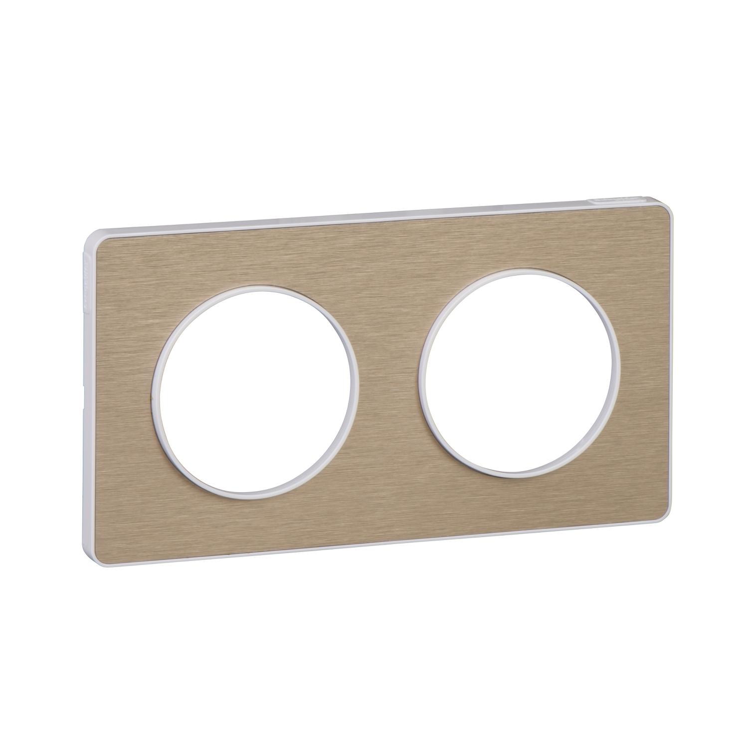 Odace Touch, plaque Bronze brossé liseré Blanc 2 postes horiz./vert. 71mm
